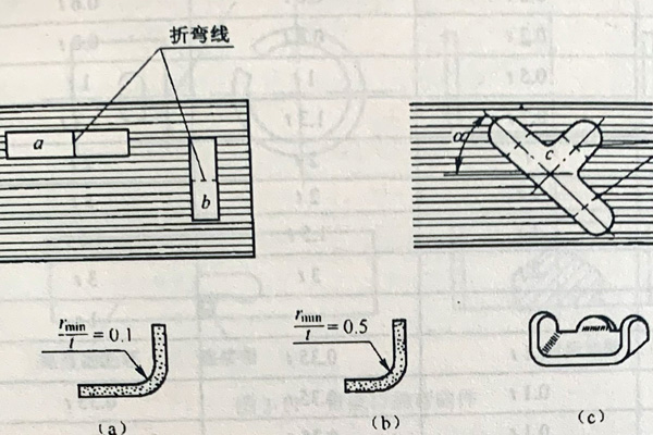 板料纖維與彎曲的關(guān)系3板料邊緣及表面狀態(tài)。彎曲件的壞料多用剪床下料或沖模落料方法制備,壞料邊緣有冷作硬化、毛刺,表面常有劃傷等缺陷。彎曲時,這些缺陷受拉應(yīng)力作用會引起應(yīng)力集中而導(dǎo)致破裂因此,彎曲前應(yīng)將毛刺和缺陷去除,彎曲時應(yīng)將有毛刺的邊緣放在彎曲區(qū)內(nèi)側(cè),使其受壓,避免彎裂,從而使最小相對彎曲半徑減小一些。